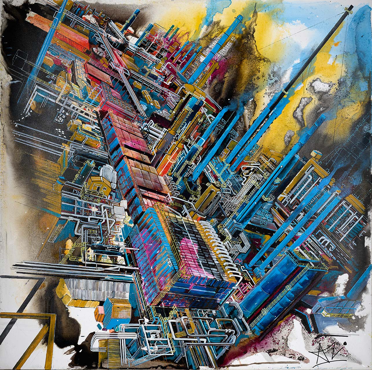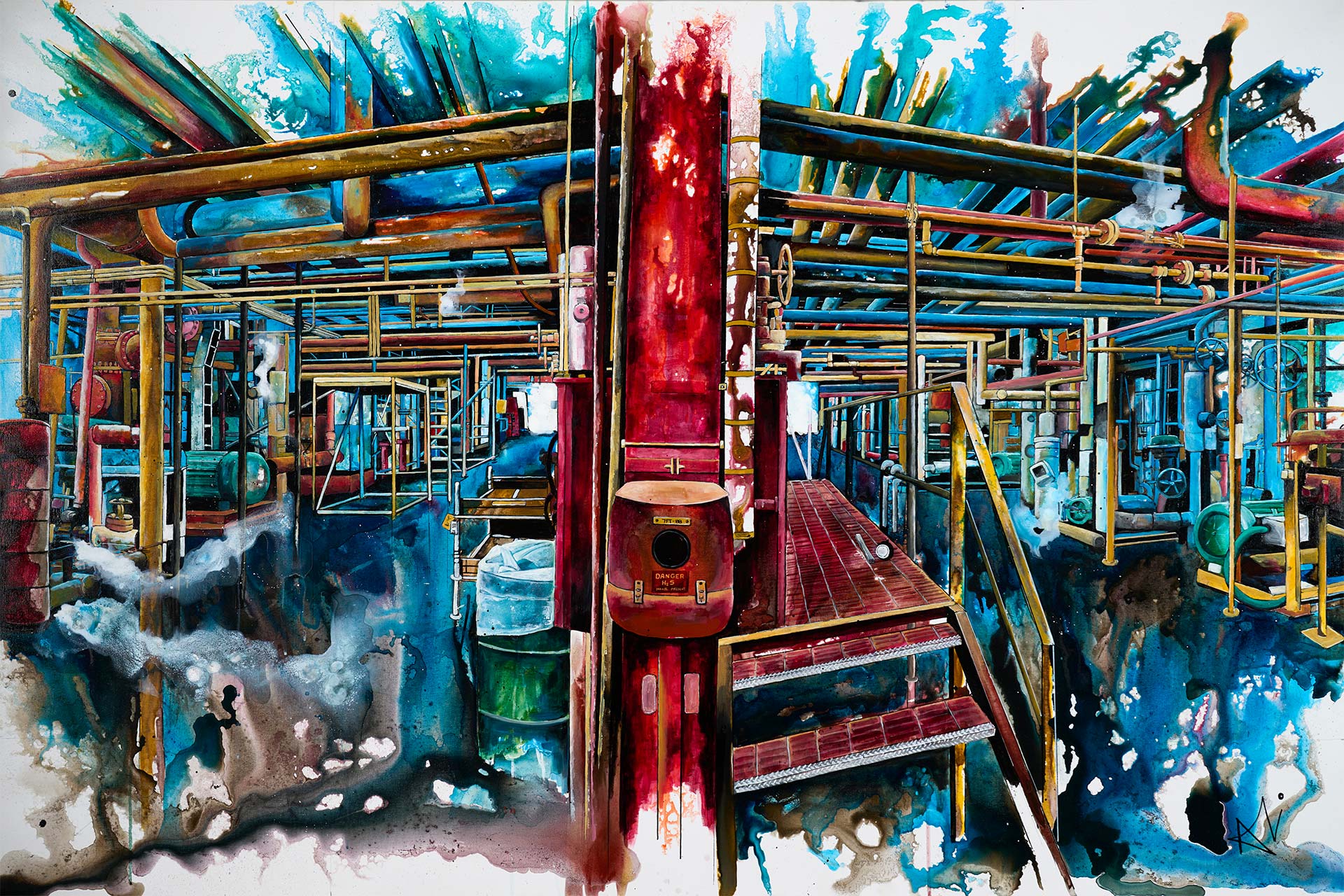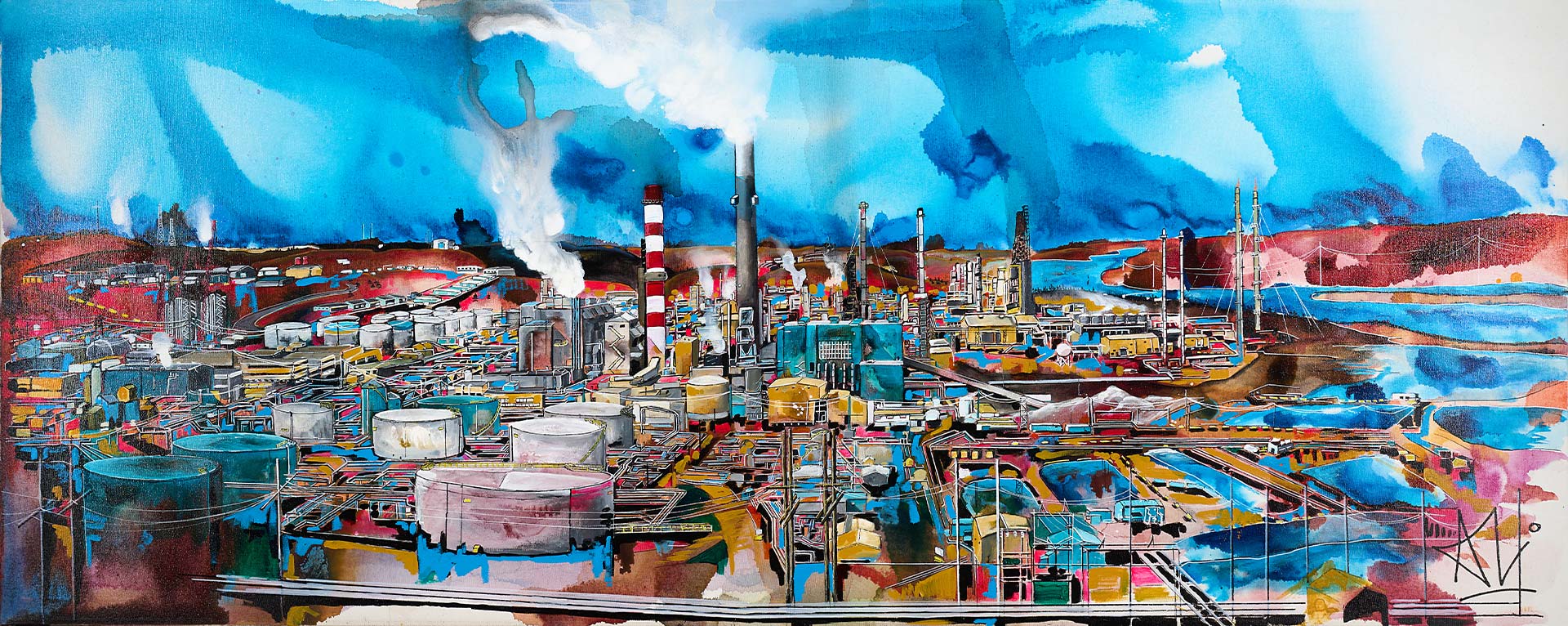 Alexandra Kavanagh is a contemporary acrylic artist who has called Fort McMurray home for the past 11 years. Working with bold colour and striking composition, she draws inspiration from her years in the refinery, translating industrial landscapes into vibrant and emotive works.