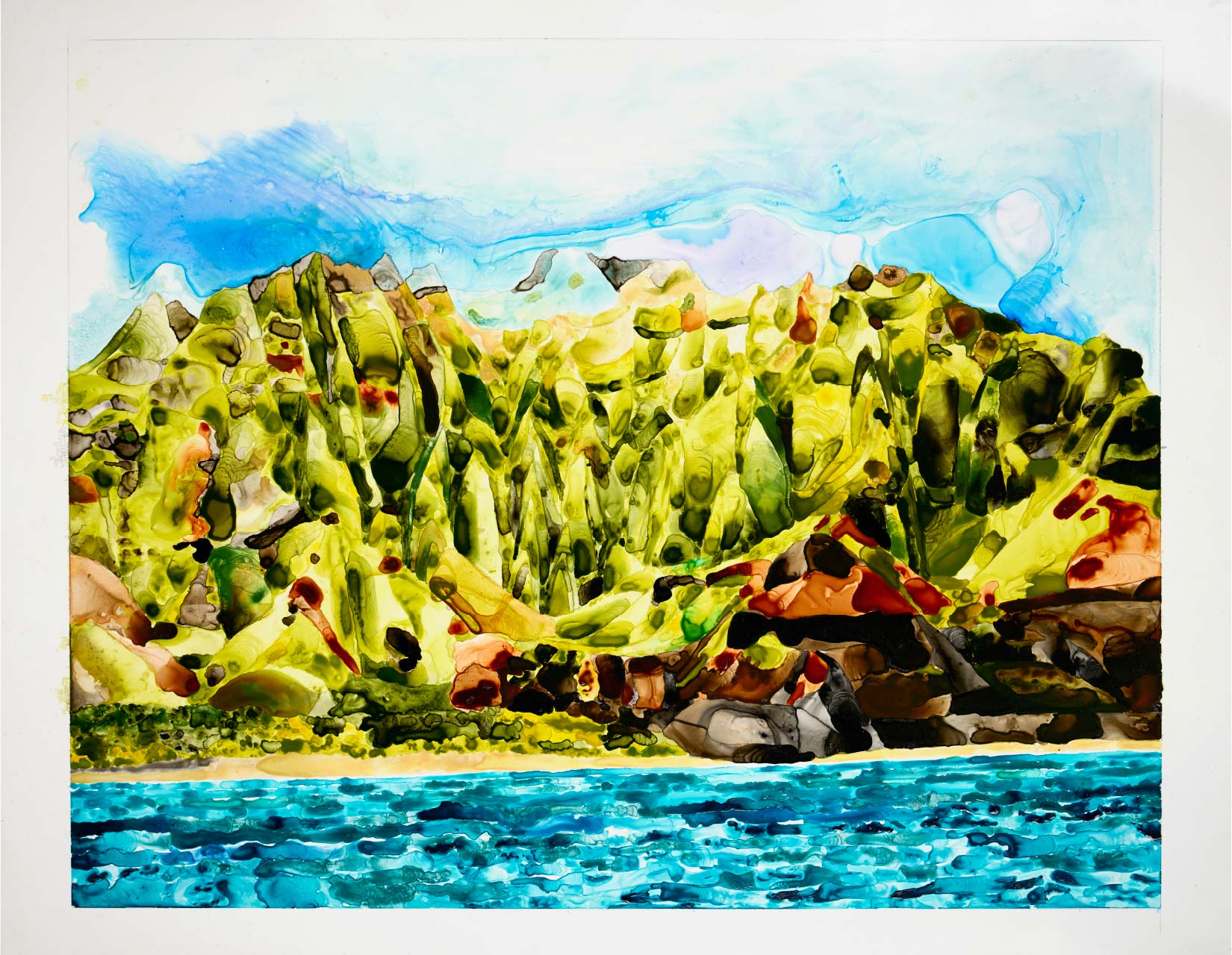 The series “Windows to the World” captures the beauty of human connection, and the beauty of iconic locations worldwide. Each painting reflects moments of transition and wonder, portraying travel as a bridge between people, places, and shared experiences. The painting features a mix of textured acrylics and alcohol markers in its artistic style.
